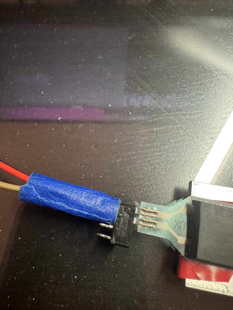 It originally seems like they soldered the wires directly to the FSR pins, and covered the whole thing in hot glue. Instead, I found that a double wipe 0.1” (2.54mm) IC socket fits the pins from this strip perfectly. I soldered my own wires to the pins on the socket, plugged the sensor pins into the socket, and then covered the whole thing in tape. Ultimately the tape didn’t hold, and to make it a lasting repair I still covered the whole thing in hot glue. It’s been working great since.